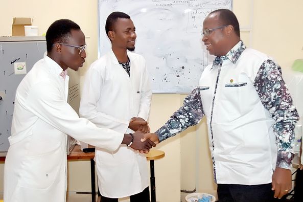 Il est 07 heures 45 minutes quand le Ministre chargé de l’enseignement supérieur et son staff arrivent au campus de l’Université Nazi BONI située au secteur 22 de la ville de Bobo-Dioulasso. Là, le Pr Adjima THIOMBIANO s’est d’abord rendu dans une salle où se déroulaient des travaux dirigés en Sciences biologiques. Il a d’abord situé le contexte de cette visite surprise qui vise à s’assurer que les cours de rattrapage sont effectifs et à féliciter et à encourager les enseignants et les étudiants pour avoir sacrifié les vacances au profit des cours.