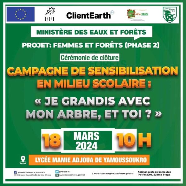 Paradmin147620 mars 2024Ouverte le 16 Novembre 2023 , la phase 2 du projet Femmes et Forêts, pilotée par le Ministère des eaux et forêts ,...