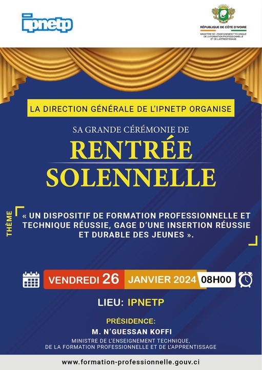 Paradmin147626 janvier 2024N’Guessan KOFFI (Ministre) : « L’IPNETP est au cœur de notre ambition de repenser et de revaloriser le dispositif de l’ETFP », Voici...