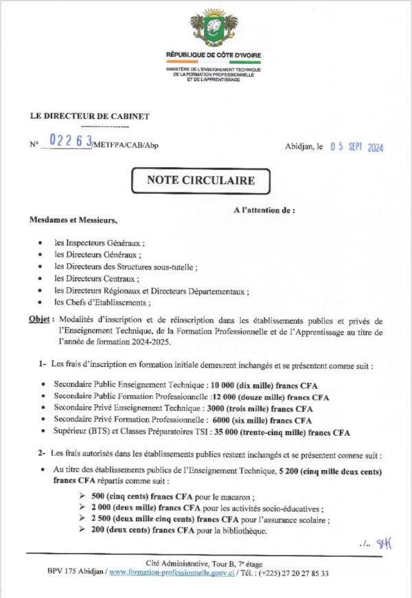 Paradmin14766 septembre 2024Enseignement Technique / Décision portant calendrier de l’année de formation 2024-2025. Source : FormationProCi