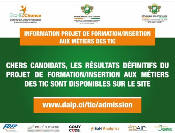 Paradmin14766 septembre 2024Enseignement Technique / Projet de formation – Insertion aux métiers des TIC, chers candidats, les résultats définitifs du projet de formation/insertion aux métiers...