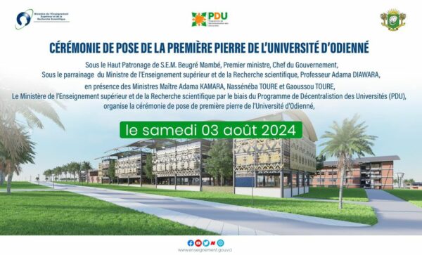 Paradmin147630 juillet 2024Enseignement Supérieur / Pose de première pierre de l’Université d’Odienné ce samedi 03 octobre 2024. Source : enseignement.superieur.ci