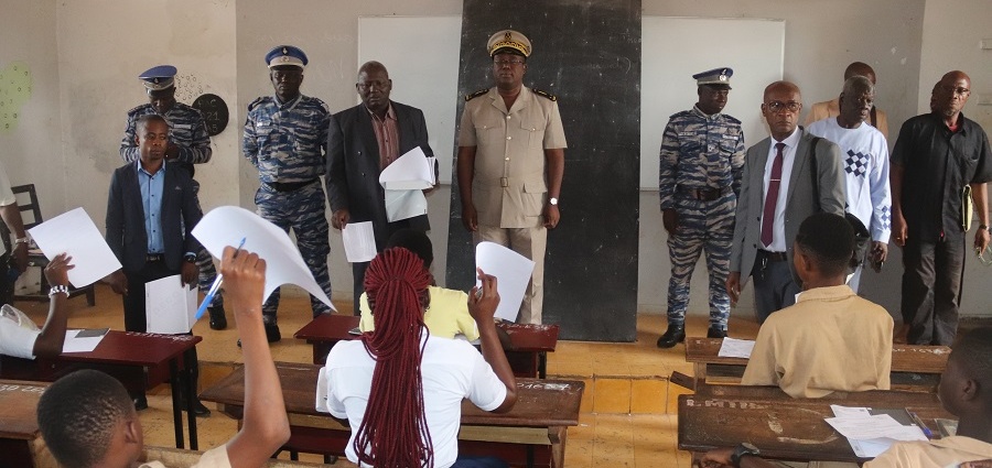 Le DRENA de Bondoukou au GS Mambo en compagnie du président régional du CNDHLe directeur régional a salué la présence effective de la majorité des candidats et des surveillants. « Je suis satisfait de la présence des forces de l’ordre et de la forte mobilisation qu’il y a eu pour ce lancement », a-t-il souligné après avoir parcouru les sept centres de composition de la ville de Bondoukou.