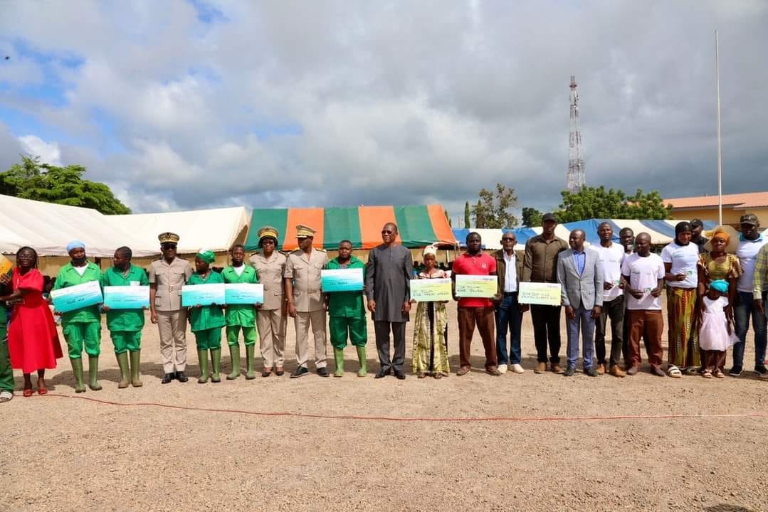 M. Bruno Nabagné KONE, Ministre de la Construction et Président du Conseil Régional de la Bagoué, a présidé cette cérémonie. Etaient également présents au nom du Ministère de la Jeunesse, Mme KPAN, née GNEKA Edwige, Directrice Régionale de la jeunesse de la Bagoué, ainsi que les Directeurs Départementaux de Kouto, Monsieur ANVO Emmanuel et de Tengrela, Monsieur KOUAME Bertin.