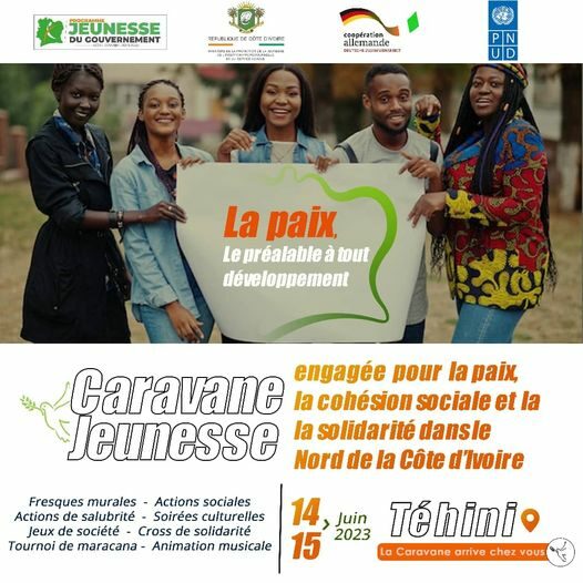 Engagée pour la paix, la cohésion sociale et la solidarité dans le nord du pays, la caravane jeunesse arrive chez vous à Tehini du 14 au 15 juin 2023, vive la jeunesse Ivoirienne.