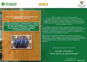 Le gouvernement a pris plusieurs mesures au titre du Ministère de la Promotion de la Jeunesse, de l’Insertion Professionnelle et du Service Civique.