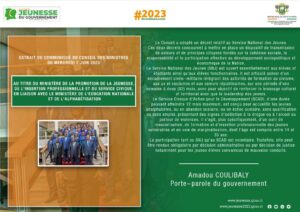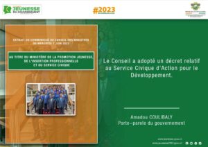 Le gouvernement a pris plusieurs mesures au titre du Ministère de la Promotion de la Jeunesse, de l’Insertion Professionnelle et du Service Civique.