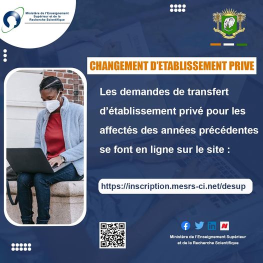 Demande de transfert : Changement d’établissement privé pour les affectés des années précédentes, les demandes de transfert d’établissement privé pour les affectés des années précédentes se font en ligne.