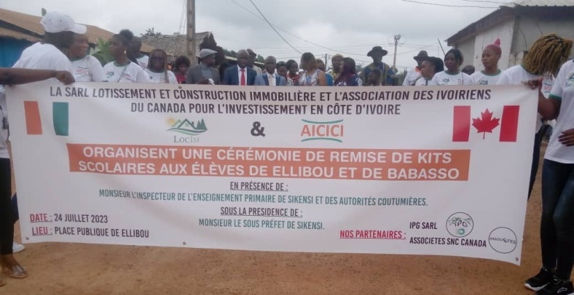 La société de lotissement et de construction immobilière (LOCIM) et l’Association des ivoiriens du Canada pour l’investissement en Côte d’Ivoire (AICICI), ont offert, lundi 24 juillet 2023, des kits scolaires aux élèves des écoles primaires d’Elibou et de Badasso, afin d’encourager les parents à mettre leurs enfants à l’école.
