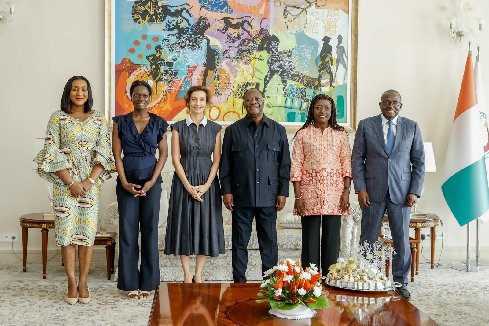 La Ministre Mariatou Koné a pris part ce samedi 10 février 2024 aux côtés du Président de la République, Son Excellence Monsieur Alassane Ouattara , à un entretien avec Madame Audrey Azoulay , Directrice Générale de l’#UNESCO.