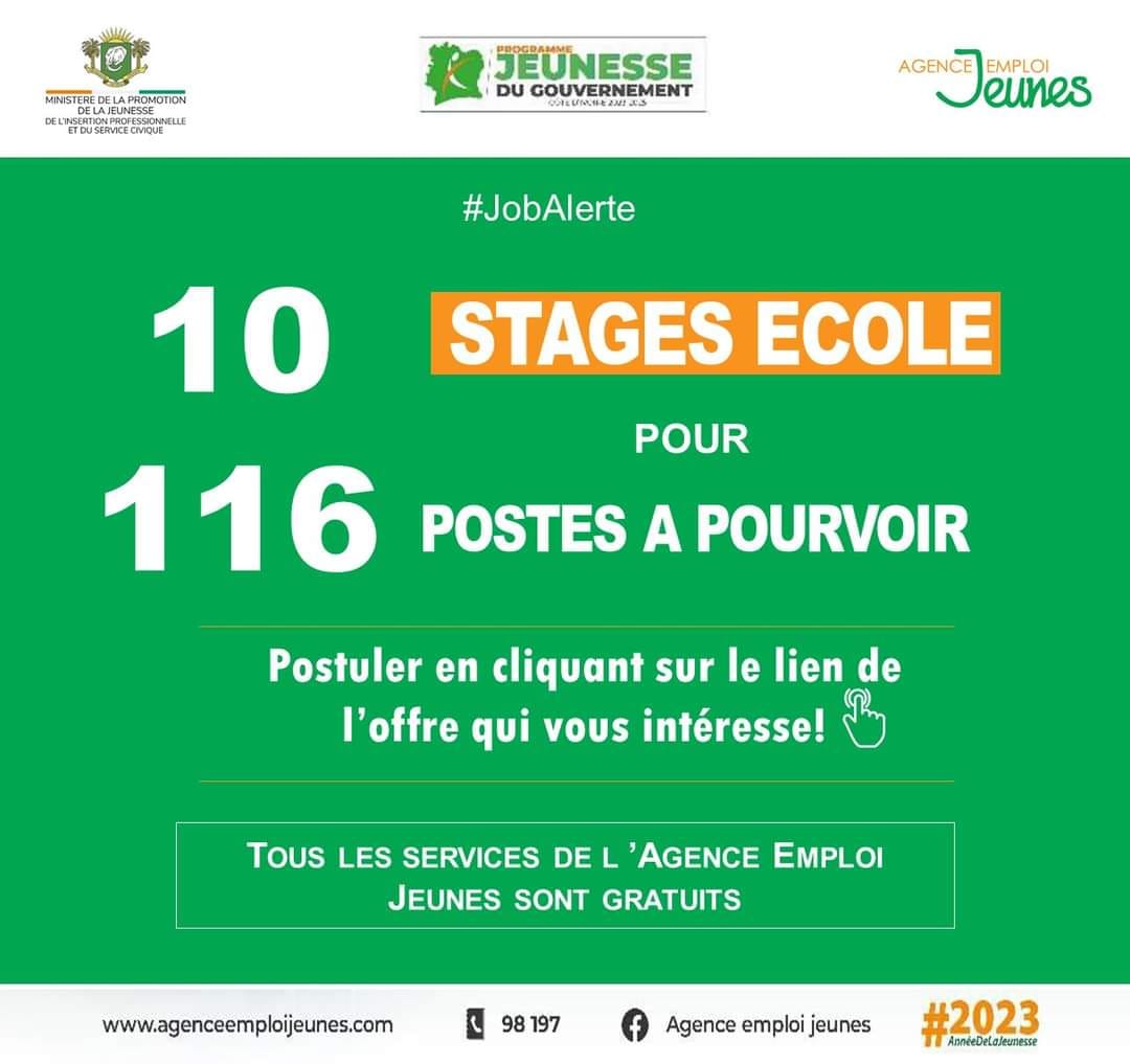 ๐’๐๐ ๐๐ง๐๐ ๐๐ฆ๐ฉ๐ฅ๐จ๐ข ๐๐๐ฎ๐ง๐๐ฌ ๐ฏ๐จ๐ฎ๐ฌ ๐ข๐ง๐๐จ๐ซ๐ฆ๐ ๐๐ ๐ฅ๐ ๐๐ข๐ฌ๐ฉ๐จ๐ง๐ข๐๐ข๐ฅ๐ข๐ญรฉ ๐๐ 10 ๐จ๐๐๐ซ๐๐ฌ Stages Ecole ๐๐จ๐ซ๐ซ๐๐ฌ๐ฉ๐จ๐ง๐๐๐ง๐ญ ร 116 ๐ฉ๐จ๐ฌ๐ญ๐๐ฌ ร ๐ฉ๐จ๐ฎ๐ซ๐ฏ๐จ๐ข๐ซ ๐ฉ๐จ๐ฎ๐ซ ๐ฅ๐ ๐๐จ๐ฆ๐ฉ๐ญ๐ ๐๐ ๐ฌ๐๐ฌ ๐ฉ๐๐ซ๐ญ๐๐ง๐๐ข๐ซ๐๐ฌ.