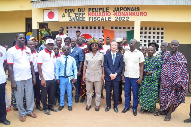 L’ambassadeur du Japon en Côte d’ivoire, Ikkatai Katsuya, a procédé jeudi 28 mars 2024, à la remise d’une école primaire entièrement équipée, d’un coût de 51 millions FCFA au village de Kouadio-Konankro situé dans la sous-préfecture de Kpouébo (département de Toumodi).