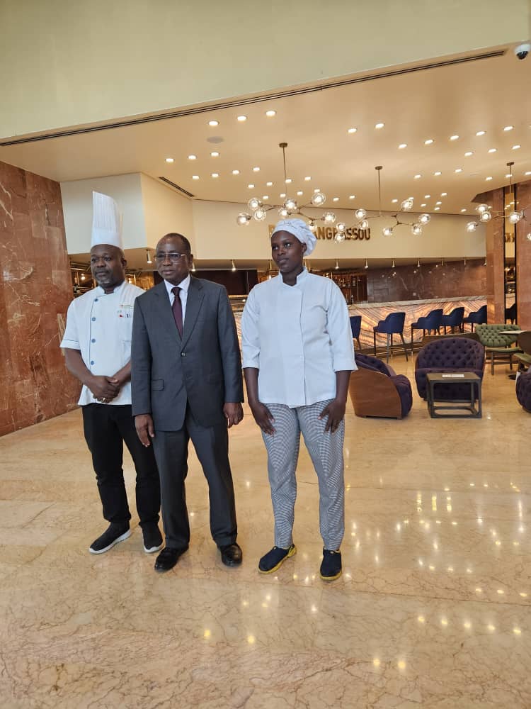 Monsieur le Ministre s’est prêté au même exercice à Yamoussoukro où il a longuement échangé avec le Directeur des Ressources Humaines de l’Hôtel « Le Président » et son équipe. Il s’agissait pour le patron du METFPA de s’assurer que ses apprenants avaient un comportement professionnel depuis le début des stages CAN.