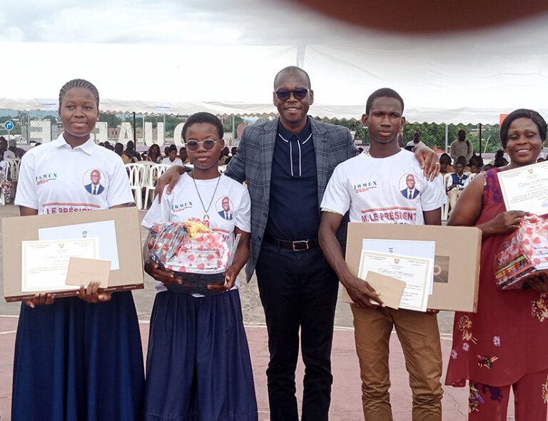 Le président de la Haute autorité pour la Bonne gouvernance (HABG), Zoro Bi Ballo Epiphane a célébré les sept élèves majors des majors au baccalauréat (BAC), au Brevet d’études du premier cycle(BEPC) et au Certificat d’études primaires et élémentaires(CEPE) de 2024 de la région de la Marahoué, en leur remettant des ordinateurs et des kits scolaires.