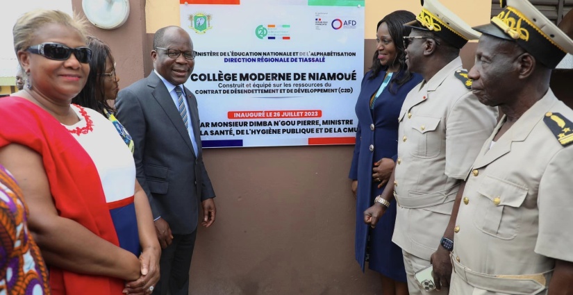 Le collège de proximité de Niamoué (Tiassalé) construit et équipé sur les ressources du Contrat de désendettement et de développement (C2D) ainsi que celui du village d’Eticoon (situé sur l’axe de Divo) ont été officiellement inaugurés par le représentant du Premier ministre, Pierre Dimba.