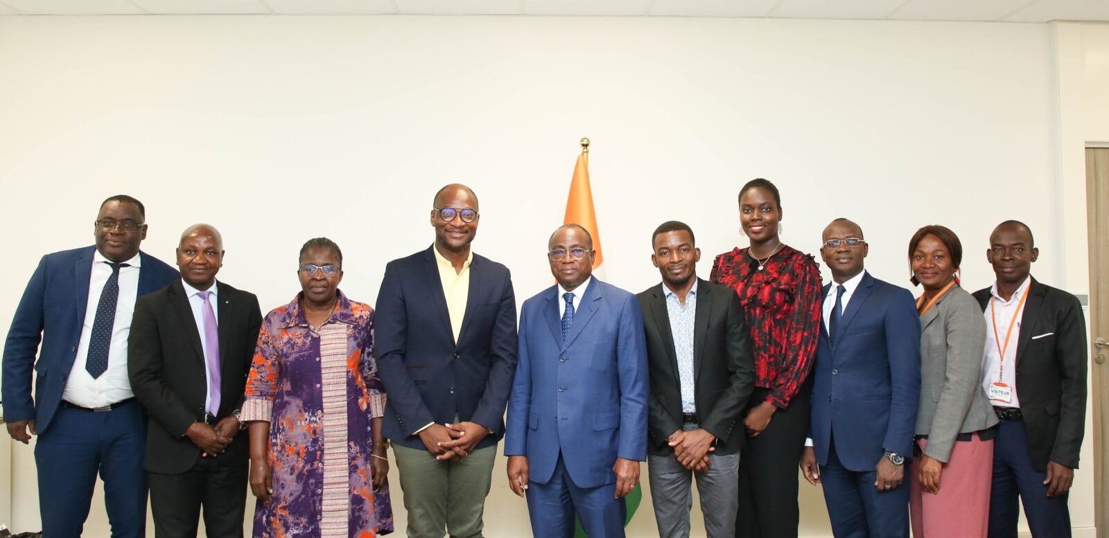 Le Ministre de l’Enseignement Technique, de la Formation Professionnelle et de l’Apprentissage, N’Guessan KOFFI, a accordé une audience, ce jeudi 13 juillet 2023 à son Cabinet, sis au 7ème étage de la Tour B au Plateau, à une délégation du Groupe français LEGRAND, Spécialiste Mondial des Infrastructures Electriques et Numériques du Bâtiment.