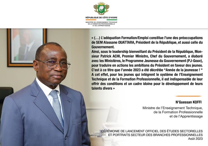 « (…) L’adéquation Formation/Emploi constitue l’une des préoccupations de SEM Alassane OUATTARA, Président de la République, et aussi celle du Gouvernement.