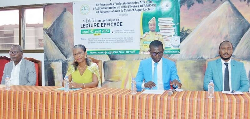 « Comment réussir à pratiquer une discipline de lecture efficace pour développer sa mémoire et sa vitesse de lecture afin de se cultiver et accélérer sa réussite professionnelle ». C’est autour de ce thème que s’est ouvert le 3 août 2023, au Musée des civilisations d’Abidjan-Plateau, l’atelier pratique de lecture rapide et efficace organisé par le Réseau des professionnels des arts et de l’action culturelle de Côte d’Ivoire (Repaac-CI).