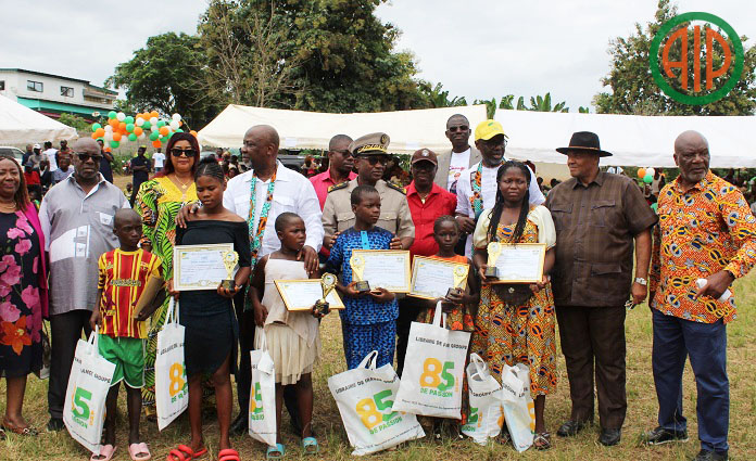 La cérémonie de récompense des meilleurs élèves s’est tenue sur la place publique du village, en marge de la fête annuelle de retrouvailles des fils et filles de la localité. L’ONG « Gagnoa notre demain » a primé les premiers de classes de chaque niveau des deux EPP. Les différents prix se composaient d’un diplôme d’excellence, d’un trophée et de kits scolaires.