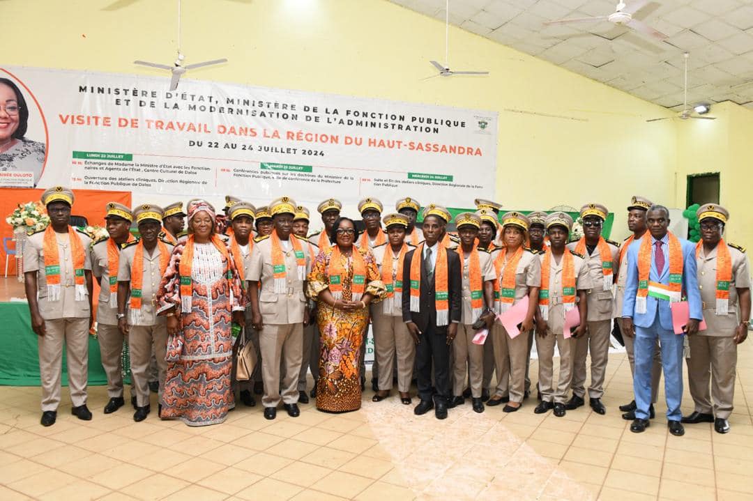 Dans le cadre de ses visites de proximité avec les fonctionnaires en région, la Ministre d’État, Anne Désirée Ouloto, a échangé avec les fonctionnaires et agents de l’État en service dans la région du Haut-SASSANDRA, ce lundi 22 juillet 2024.