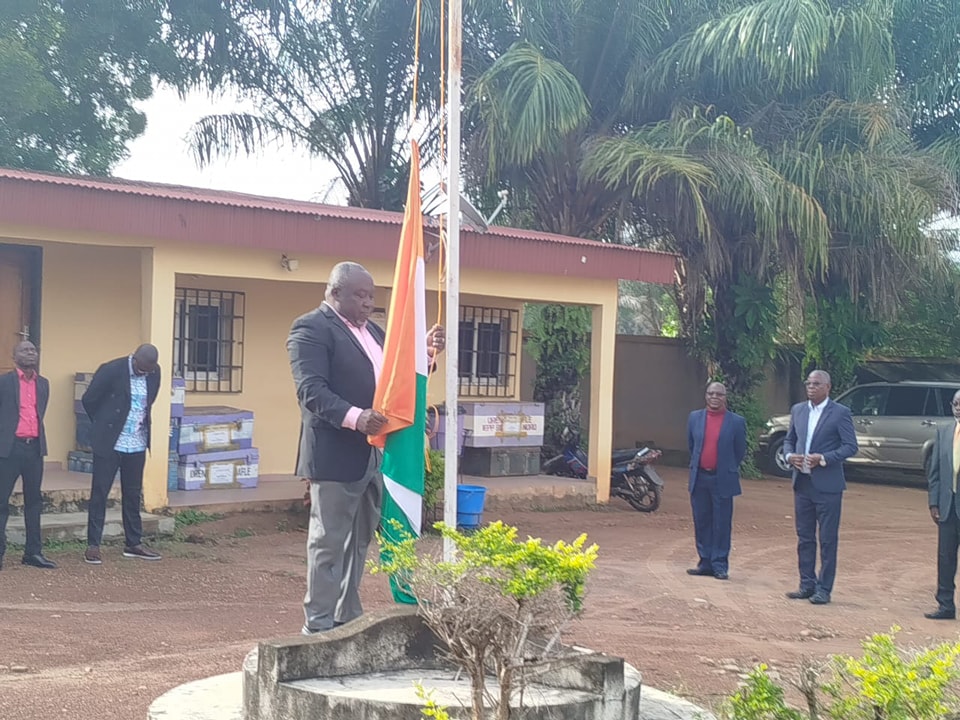 La cérémonie d’honneur à l’emblème national s’est déroulée le lundi 14 octobre 2024, en présence de monsieur Cina OUATTARA, entouré de ses Secrétaires Généraux. Bien qu’étant présent il a demandé que la présidence de ladite cérémonie soit faite par le Secrétaire Général ROBALE Raoul.