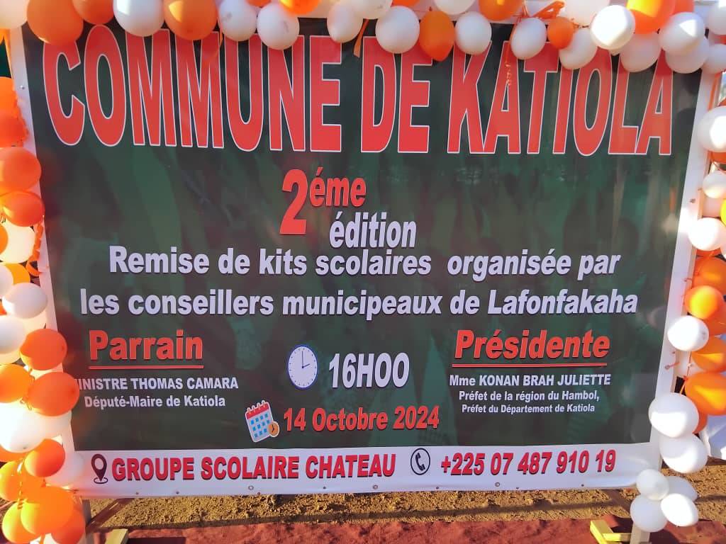 Cette cérémonie était présidée par le Préfet de la région du Hambol, Préfet du département de Katiola et parrainée par Monsieur Thomas Camara, Député-Maire de la Commune de Katiola.