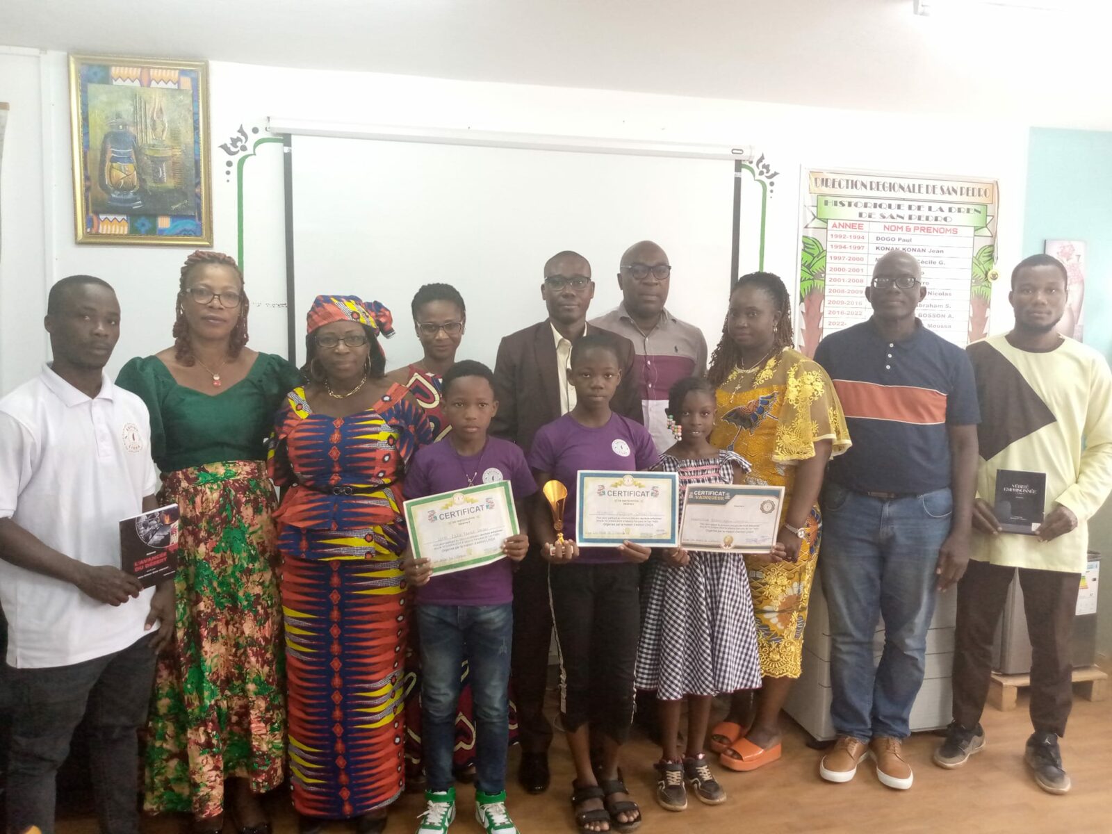 Suite au concours d’écriture organisé par l’EDITION LINDA le samedi 19 octobre 2024 à la salle de réunion de l’Alliance Française de San Pedro, M. DIARRASSOUBA Moussa, DRENA de San Pedro a reçu les organisateurs, les lauréats et les enseignants encadreurs à son bureau ce mardi 22 octobre 2024.