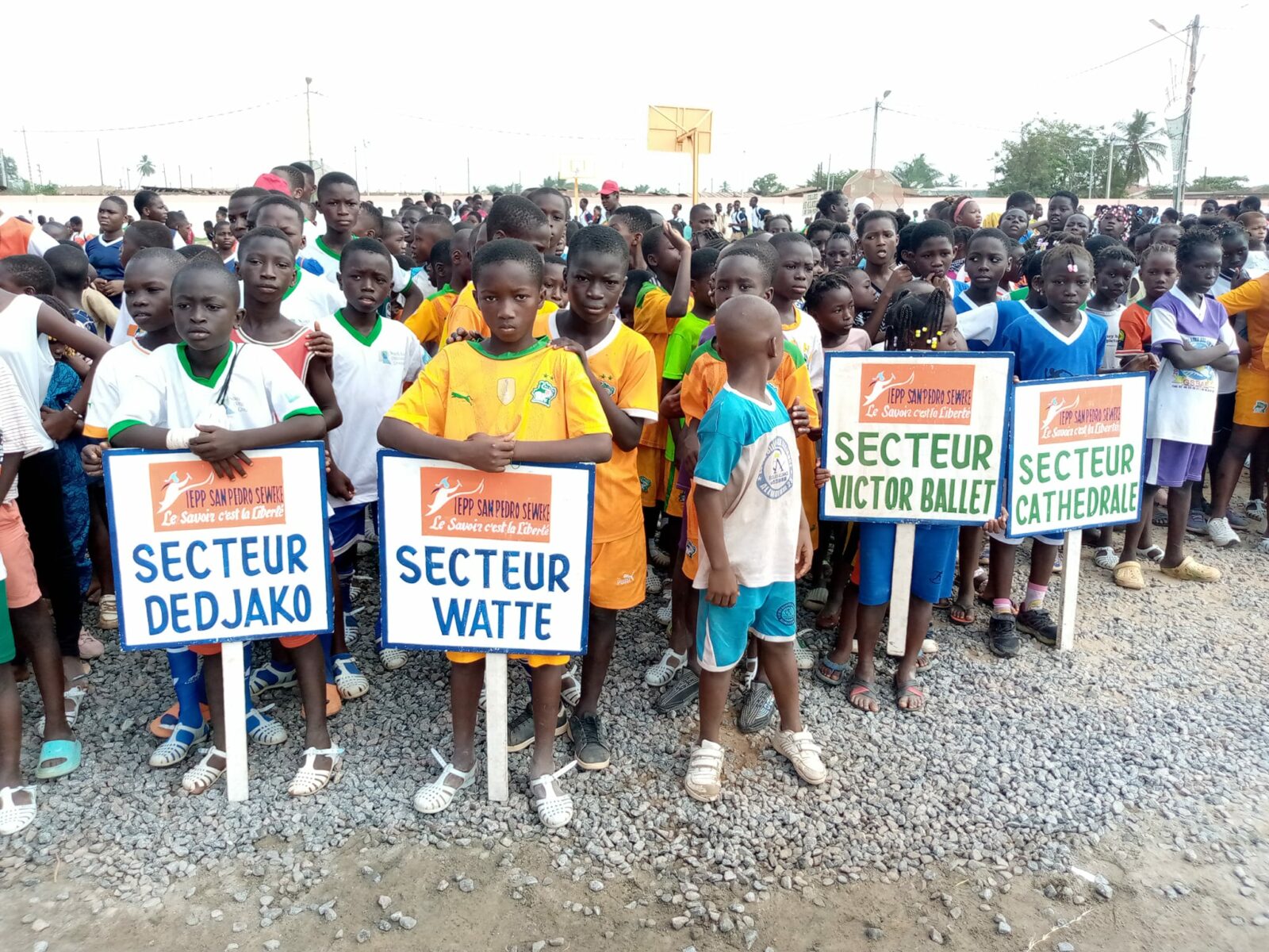 Cette sympathique cérémonie qui est placée sous la présidence de M le PRÉFET de la RÉGION de SAN PEDRO a été rehaussée par la présence de son représentant, de celui du Conseil Régional, de la présence effective de M le Directeur Régional de l’Education Nationale et de l’Alphabétisation, et du Directeur Régional des Sports.