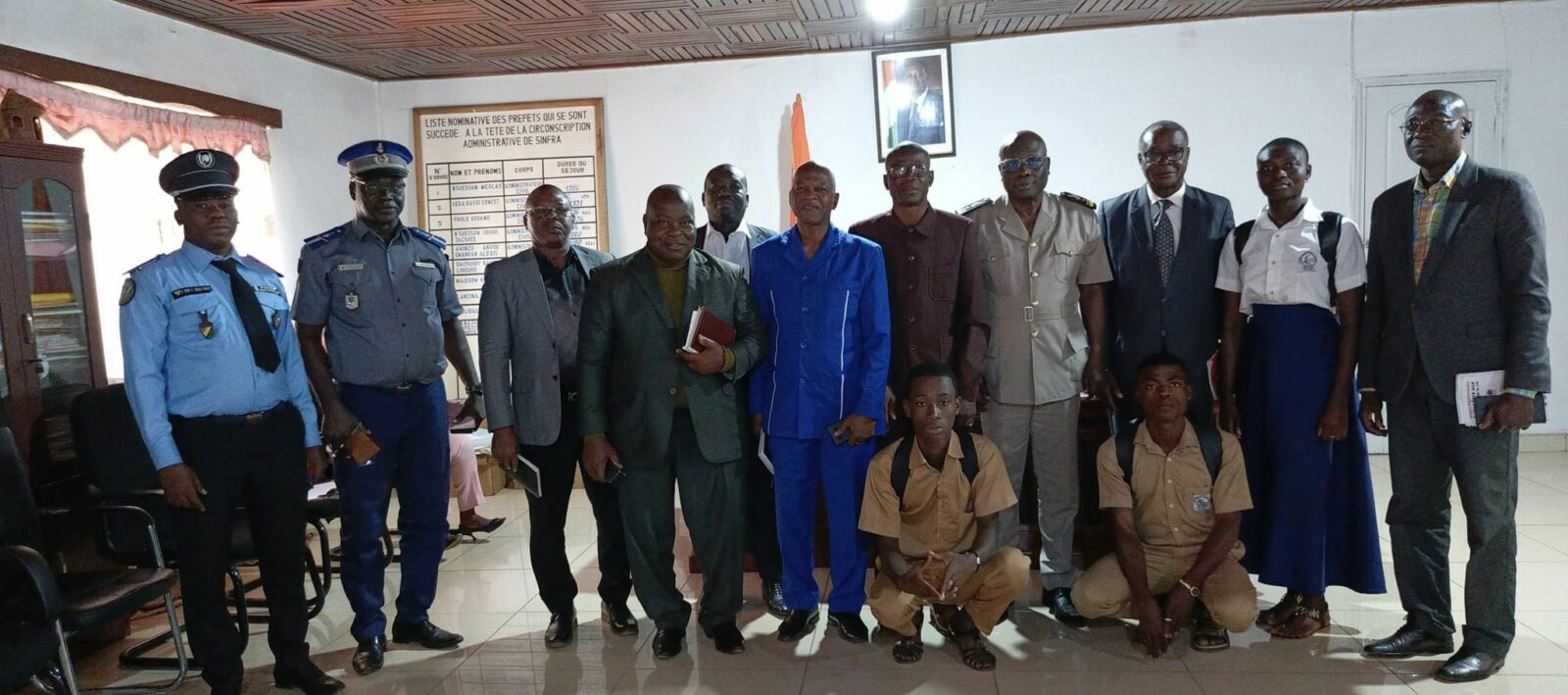 Ce lundi 14 octobre 2024,suite au mouvement d’humeur des élèves du Lycée Henri Konan Bédié de Sinfra, Monsieur le Préfet du département de Sinfra a convoqué une réunion d’urgence à son bureau à laquelle était convié Monsieur le Directeur Régional de l’Éducation National et de l’Alphabétisation de Sinfra, M. Dramane COULIBALY en présence des Forces de Défense et de Sécurité, du Proviseur dudit établissement et des délégués des élèves.