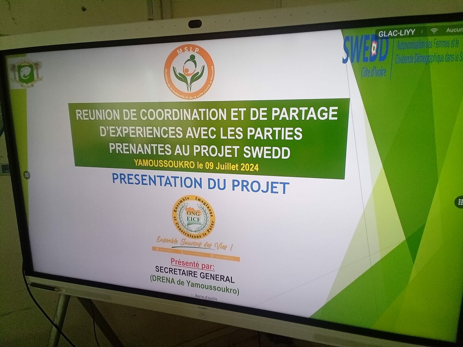 Dans le cadre du sous-projet SWEDD dénommé *Projet d’appui à l’amélioration du maintien de la jeune fille dans le premier cycle du secondaire, Monsieur Vazoumana CISSE, Directeur Régional de l’Education Nationale et de l’Alphabétisation de Yamoussoukro a procédé le mardi 09 juillet 2024 à la salle de conférences de la DRENA à l’ouverture de la réunion de coordination et de partage d’expériences avec les parties prenantes au Projet SWEDD-EDUCATION.