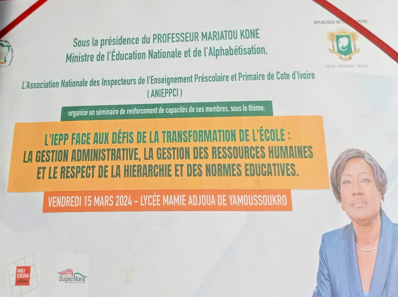 Le thème de ce séminaire est: L’inspecteur de l’enseignement préscolaire et primaire face aux défis de la transformation de l’école :- la gestion administrative.