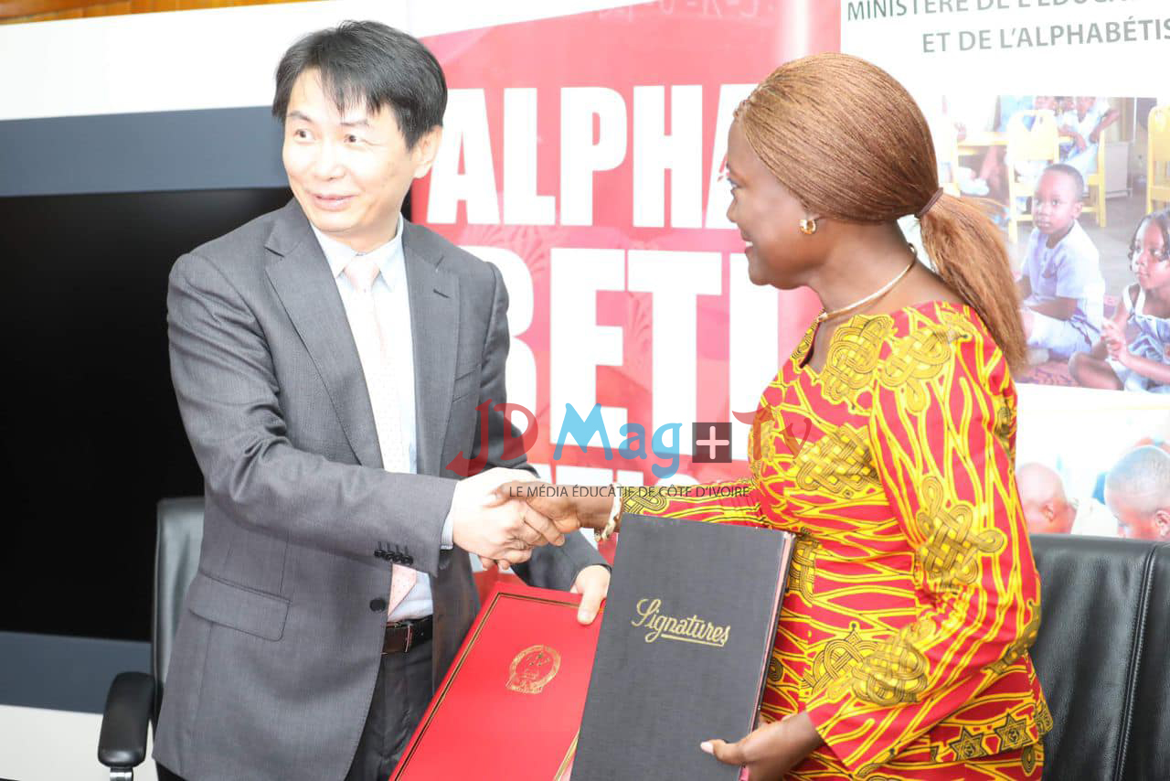 Une signature de protocole d’accord entre la Ministre ivoirienne de l’Éducation Nationale et de l’Alphabétisation, Professeur Mariatou Koné et Son Excellence Monsieur Wu JiE, Ambassadeur de la République de Chine en Côte d’Ivoire, s’est tenue ce lundi 22 avril 2024, au 28ème étage de la TOUR D, dans le cadre de la 6ème session de la CONFEMEN.