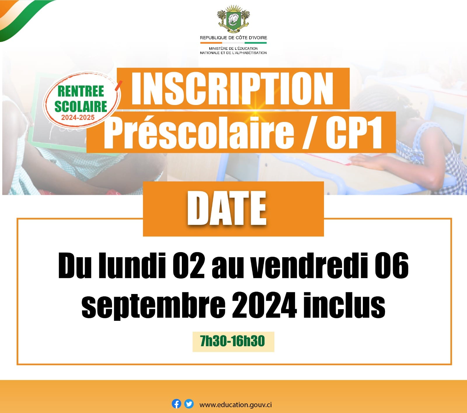 Éducation Nationale / Rentrée scolaire 2024-2025 : Début des inscriptions au préscolaire et au CP1.
