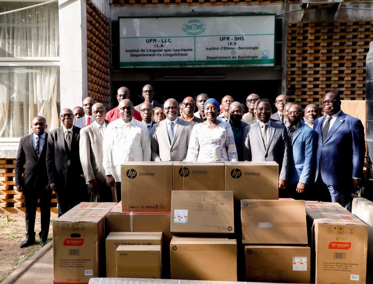 La Ministre de l’Éducation Nationale et de l’Alphabétisation, Professeure Mariatou Koné, a offert ce jeudi un important lot de matériels à l’Institut d´Ethno Sociologie de l’Université Félix Houphouët-Boigny d’Abidjan ( IES) . Il s’agit, entre autres, d’ordinateurs de bureau , de matériels de projection, de splits , d’armoires, etc.