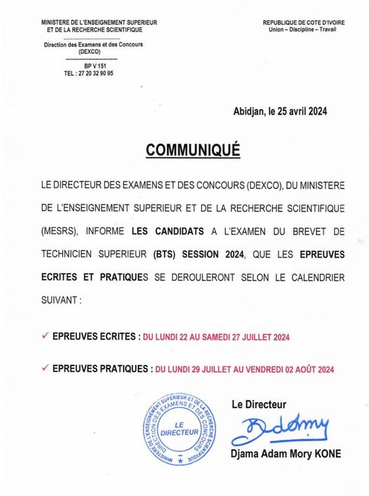 Enseignement Supérieur / BTS Session 2024 : Voici les dates des épreuves écrites et pratiques .