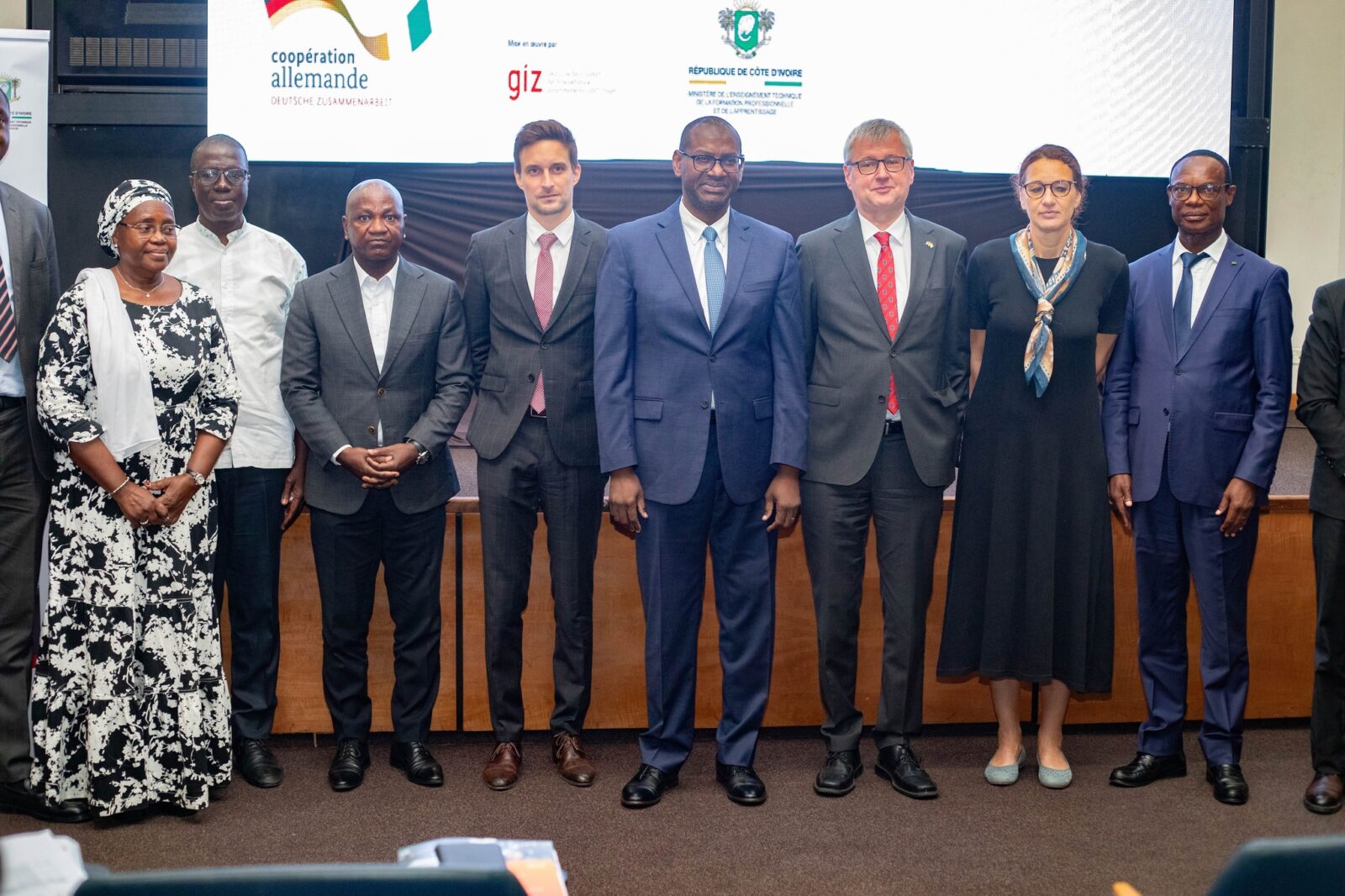 Au nom de Monsieur le Ministre N’Guessan KOFFI, Monsieur le Directeur de Cabinet du Ministère de l’Enseignement Technique, de la Formation Professionnelle et de l’Apprentissage, SANGARE Moustapha, a procédé, ce Vendredi 12 Avril 2024 à la salle « JEWELS » de la CEGCI-Plateau, en présence de SEM. Matthias VELTIN, Ambassadeur de la République Fédérale de l’Allemagne en Côte d’Ivoire, au lancement officiel du Projet « Appui au Développent de la Formation par Alternance » (ADEFA).