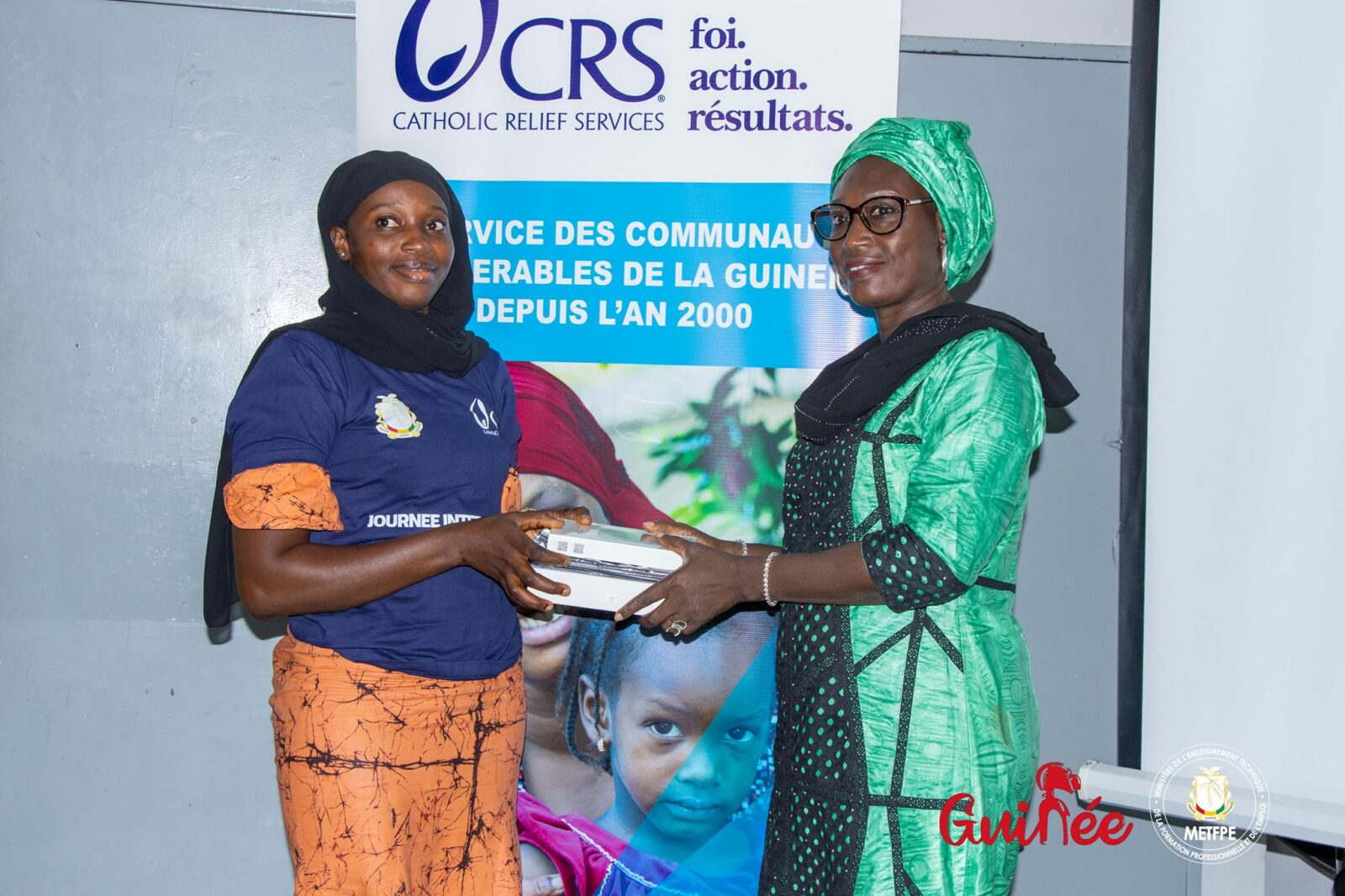 Dans son intervention, la représentante résidente du CRS en Guinée, Madame Gladys ARCHANGE, a décrit la mission de son ONG avant d’encourager les lauréates à poursuivre leur élan dans la formation.