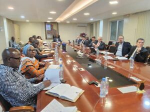 Le Ministre de la Santé et de l’Hygiène Publique, entouré des cadres de son cabinet, a eu une séance de travail avec AP-HP et le groupe EFFAGE-EGIS-VAMED, en charge de la construction des 4 centres hospitaliers régionaux modulaires et évolutifs.