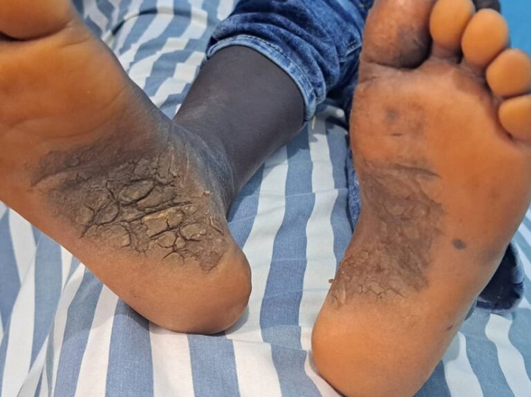Selon le directeur départemental de la Santé, Dr Joël Yavo Gbalé, l’élève Koffi Yvan a été pris en charge sur instructions express du ministre Pierre Dimba. Rappelant que l’enfant est connu des services de santé pour y avoir été pris en charge déjà pour les mêmes raisons, Dr Gbalé a indiqué mardi 23 janvier 2024 qu’il s’agit d’un eczéma de contact provoqué probablement par une sensibilité aux chaussures en plastique qu’il porte.