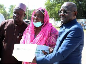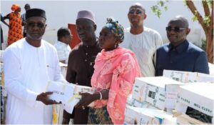 Le don est réparti comme suit : 500 sacs de 50 kgs de mil, 500 bidons d’huile de 5 Litres et 500 sachets de pâtes alimentaires.