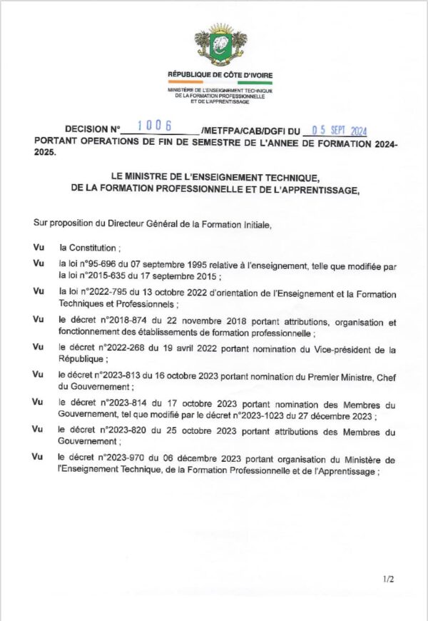 Paradmin14768 novembre 2024Enseignement Technique / Décision portant opérations de fin de semestre de l’année de formation 2024-2025. Source : Nombre de vues / Téléchargement...