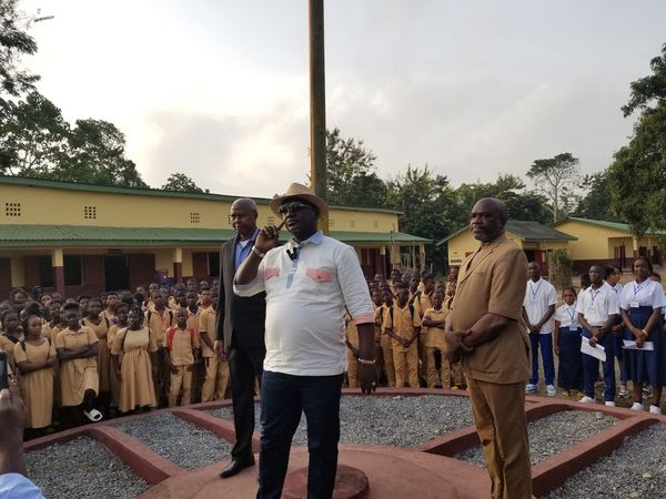 le Ministre Guillaume HAWING sur les chantiers des 4 écoles primaires type BARRY DIAWADOU dans les communes de Conakry et ceux du lycée...