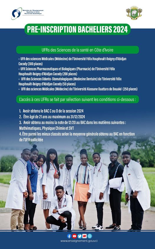Enseignement Supérieur / Pré-inscription des bacheliers 2024 𝐝𝐮 𝟏𝟓 𝐣𝐮𝐢𝐥𝐥𝐞𝐭 𝟐𝟎𝟐𝟒 𝐚𝐮 𝟑𝟏 𝐚𝐨𝐮𝐭 𝟐𝟎𝟐𝟒. • UFRs des Sciences de la santé en...