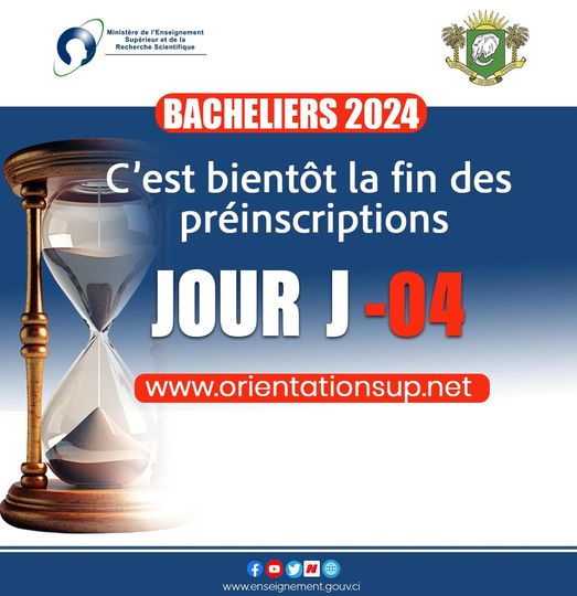 Enseignement Supérieur / Préinscription des bacheliers 2024 : Le processus de préinscription prend fin dans 04 jours. : www.orientationsup.net 𝐝𝐮 𝟏𝟓 𝐣𝐮𝐢𝐥𝐥𝐞𝐭 𝟐𝟎𝟐𝟒...