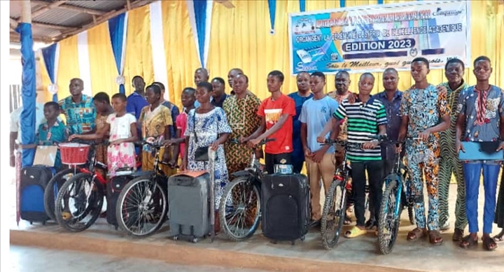 Ils sont au total 12 récipiendaires dont 3 filles à bénéficier des prix composés, entre autres, de vélos, de valises, de dictionnaires, de calculatrices, de parapluies, de cartables et d’ordinateurs portatifs, le tout évalué à 1.098.500 F.CFA.